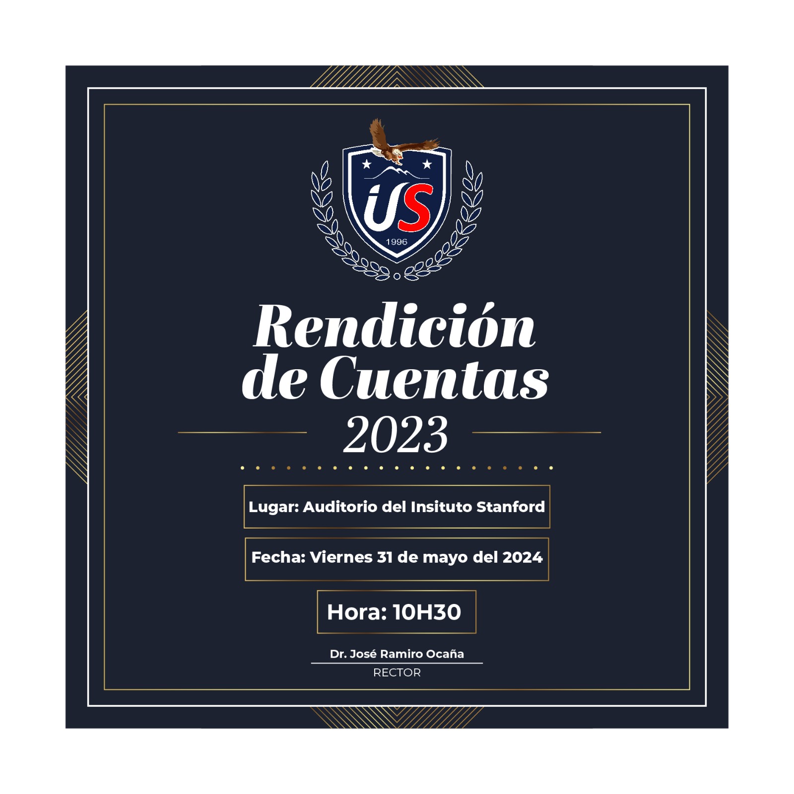 Se invita a la comunidad educativa del Instituto Superior Universitario Stanford al acto de Rendición de Cuentas-2023