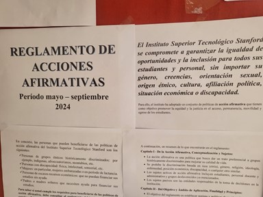 馃摎 隆Informados y Empoderados! Socializaci贸n del Reglamento de Acciones Afirmativas El IST Stanford culmin贸 exitosamente el proceso de socializaci贸n de nuestro Reglamento de Acciones Afirmativas con todos los estudiantes, curso por curso. Esta jornada informativa fue clave para que toda la comunidad estudiantil conozca: 驴Qu茅 son? Las medidas que promueven la equidad e inclusi贸n. 驴Qui茅nes se benefician? Los grupos prioritarios y en situaci贸n de vulnerabilidad. 驴C贸mo aplicarlas? Los procedimientos para acceder a becas, apoyos econ贸micos y facilidades acad茅micas. 隆Recuerda! El objetivo es garantizar la igualdad de oportunidades para tu acceso, permanencia y 茅xito en la instituci贸n. Si tienes dudas o necesitas iniciar un proceso, contacta a la Unidad de Bienestar Estudiantil e聽Institucional.